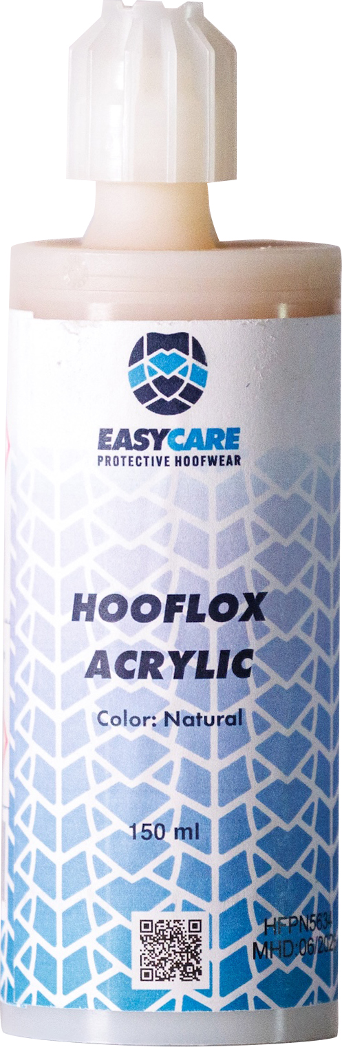 Aby uzupełnić swoją ofertę podków kompozytowych, Easycare wprowadziło na rynek odpowiednie kleje z serii Hooflox. Dwuskładnikowy klej na bazie metakrylanu metylu jest dostępny w kolorze naturalnym (beżowym) i czarnym, co pozwala na dopasowanie go do koloru kopyta. Klej akrylowy charakteryzuje się szybkim czasem utwardzania, wynoszącym zaledwie 90–120 sekund, i jest w pełni związany po 5 minutach. Klei podkowy stalowe i aluminiowe, a także plastikowe i kompozytowe. Idealnie nadaje się również do naprawy pęknięć, na przykład, oraz do kształtowania przedłużeń. Oferuje najwyższą siłę wiązania i maksymalną stabilność przy wyjątkowo niskim skurczu. Zapewnia większą wydajność i wysoką siłę wiązania. Skuteczny w trudnych warunkach pracy i w każdych warunkach pogodowych. Posiada dużą zdolność wypełniania szczelin do 10 mm.