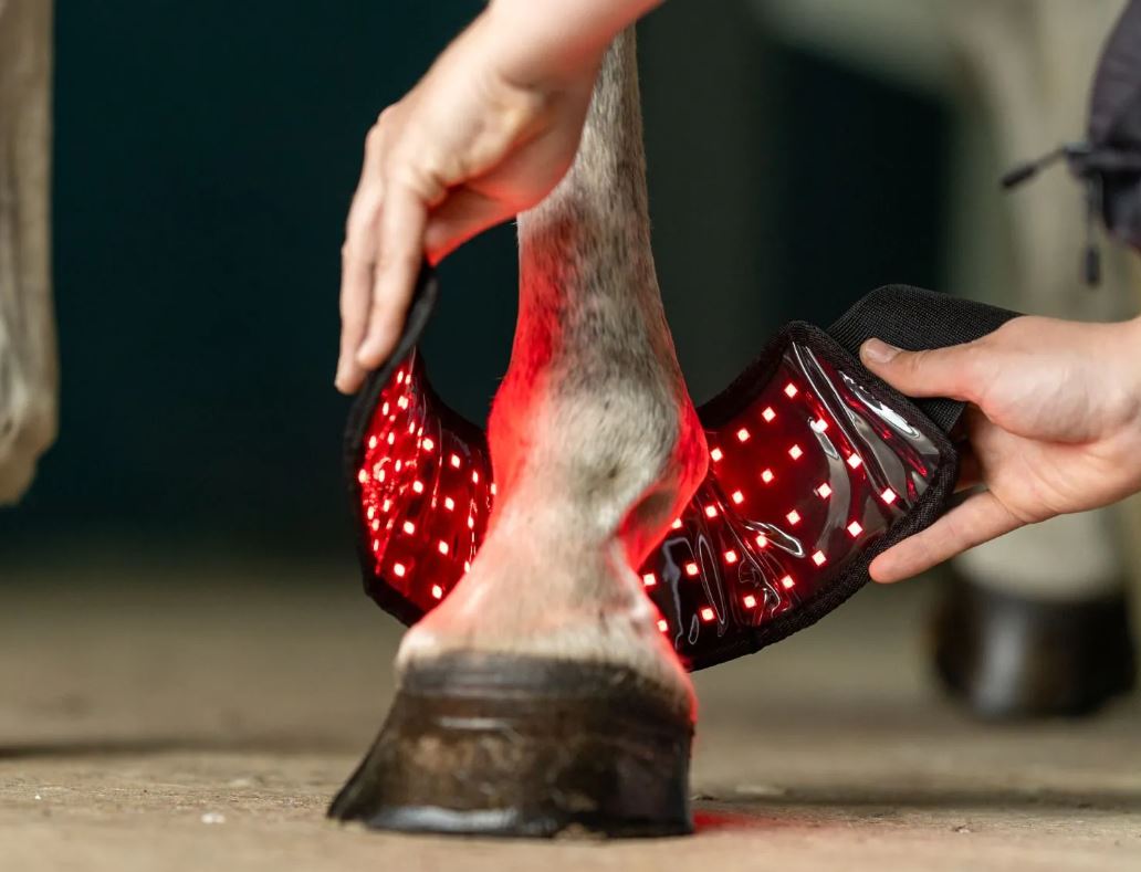Terapia światłem o długościach fal 660 nm (widzialne czerwone światło) i 850 nm (bliska podczerwień, NIR), często określana jako fotobiomodulacja (PBM) lub terapia laserowa niskiego poziomu (LLLT), zyskała uwagę w medycynie weterynaryjnej jako narzędzie uzupełniające w leczeniu schorzeń koni. PBM działa na poziomie komórkowym, stymulując mitochondria do zwiększenia produkcji adenozynotrifosforanu (ATP), co napędza naprawę i proliferację komórek. Długość fali 660 nm wpływa głównie na powierzchowne tkanki, redukując stres oksydacyjny i promując efekty przeciwzapalne poprzez modulację cytokin, takich jak IL-1β i TNF-α. Natomiast 850 nm przenika głębiej (do kilku centymetrów). Światło NIR promuje rozszerzanie naczyń, potencjalnie poprawiając perfuzję do wału koronowego i lamel, co wspiera szybszą regenerację ściany kopyta (zazwyczaj 1 cm na miesiąc u zdrowych koni) i silniejsze połączenia lamelkowe.Ta forma fotobiomodulacji (PBM) wykorzystuje światło czerwone (660 nm) do płytszego przenikania tkanek w celu wspomagania gojenia powierzchniowego i redukcji zapalenia, podczas gdy światło bliskiej podczerwieni (850 nm) dociera do głębszych struktur, takich jak ścięgna i kości w kopycie.