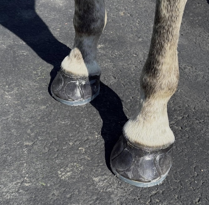 • Elastyczność i naturalny ruch – struktura poliuretanowa wygina się wraz z kopytem, ​​umożliwiając jego rozszerzanie się, kurczenie i naturalny ruch. Dzięki temu koń czuje się jak na boso, a jednocześnie zapewnia ochronę.