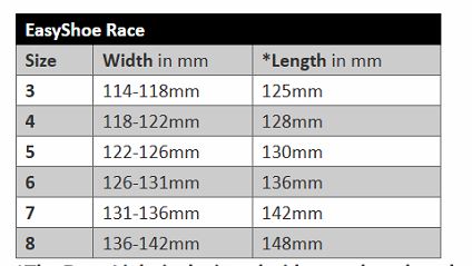 Uwaga: Rozmiar butów Race Light jest ustalany niezależnie i nie jest powiązany z tradycyjnymi rozmiarami podków.